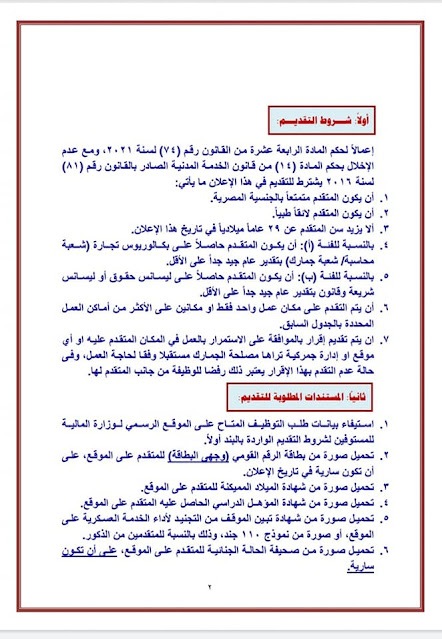 • علماً بأنه سيتم عقد مقابلة شخصية مع المتقدمين من الفئتين المشار إليهما ممن اجتازوا اختبارات التقييم الالكترونية فقط، وعلى ان تكون المفاضلة بين المتقدمين وفقاً للقواعد المقررة قانوناً فى هذا الشأن.